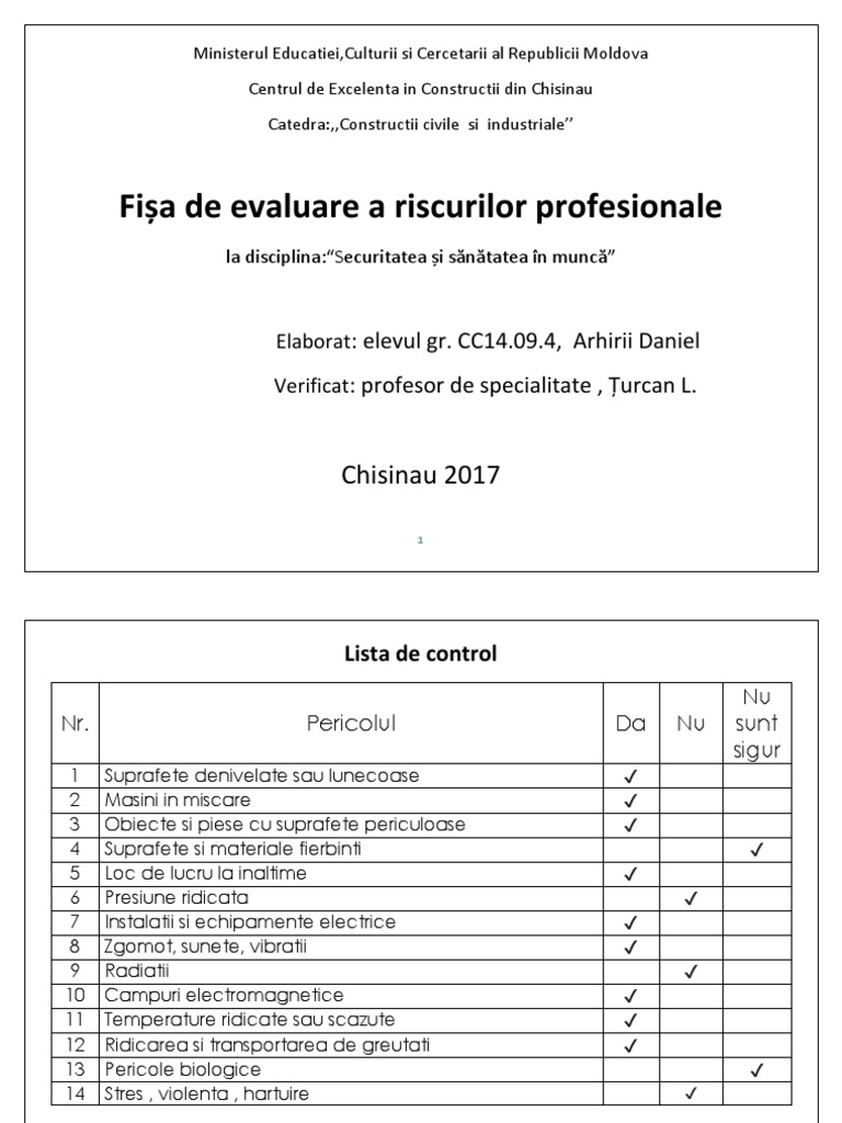 Cumpara 5001 la 0,06 ron fiecare si salveaza 34%. Profess team vă oferă prin consultanța specialiștilor angajati, evaluarea, identificarea și analiza temeinică a riscurilor. Fisa postului, fisa de post, regulament intern, mediere, mediator, angajat, angajator. Fisa expunere la riscuri profesionale. Toate categoriile accidente de munca actiuni periodice ssm autorizatii ssm documente ssm fise de evaluare a riscurilor instructiuni proprii ssm organizarea activitatii de ssm psi relatia cu itm.