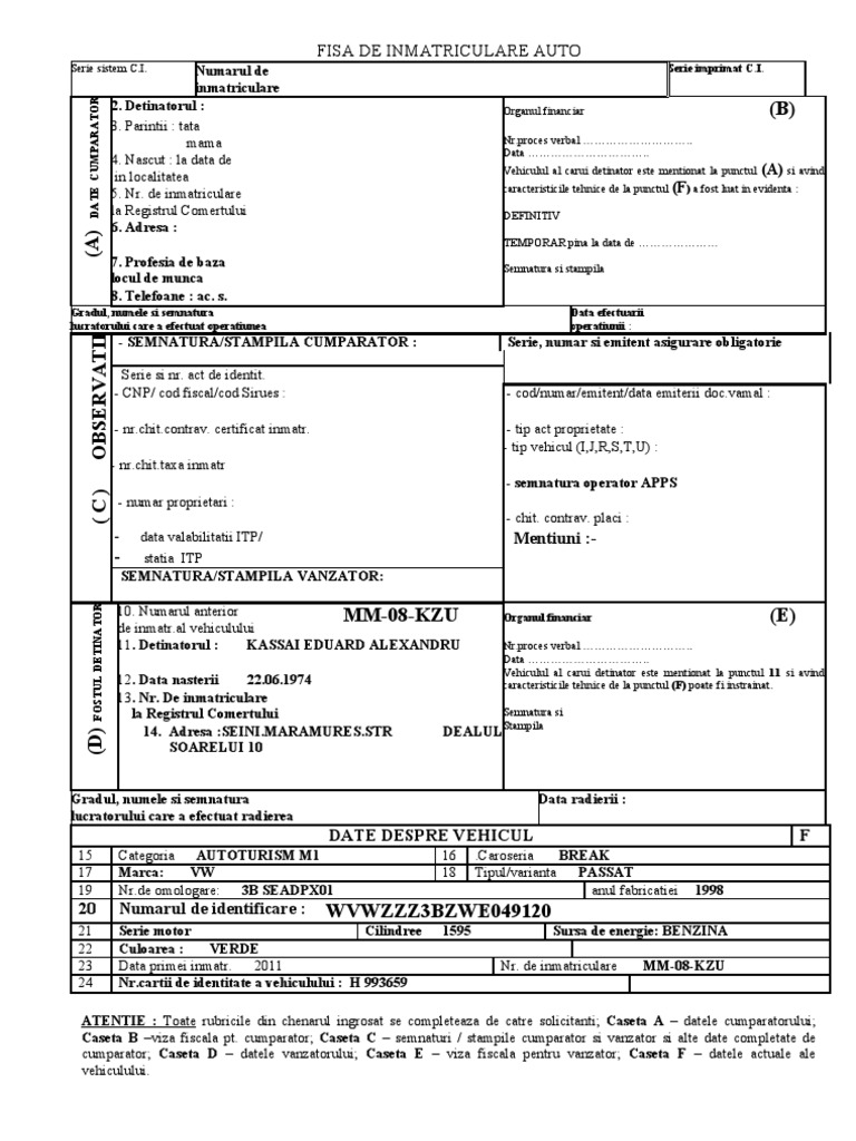 Dă clic aici pentru a anula răspunsul. In localitatea vehiculul al carui detinator este mentionat la punctul (a). Download formular model de fisa inmatriculare transcriere autovehicul in format pdf, word, doc,.