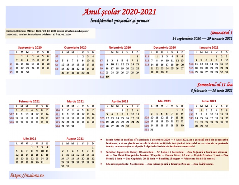 Posted on september 7, 2019 by blagazelia. Acesta este împărţit în două semestre şi patru vacanţe pentru toţi elevii, plus o vacanţă pentru elevii din ciclul primar şi copiii. (2) prin exceptie de la prevederile alin.