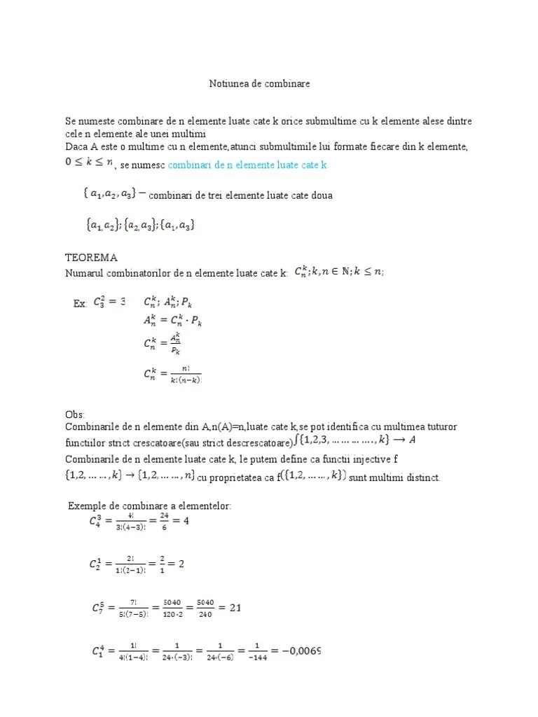 Matematica, algebra, combinari, sn=c(de 2 luate cate 2)+ c(de 3 luate cate 2)+. Numărul aranjamentelor de n elemente luate câte k este: 2 combinari de x luate cate 4 aranjamente de . Ai 2 mere le împarți la 2 (persoane) și fiece . N= n= pk 1 2.